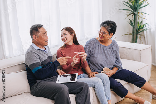 daughter asian girl teen happy exciting gladly with pregnancy test found result pregnant positive happy to have a baby good news with mature parents expectant.