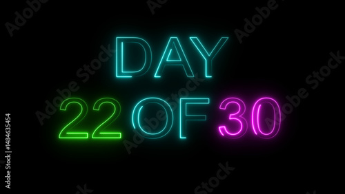Day 1 of 30 neon text illustration. graphic for workout challenge, fitness countdown, or daily motivation videos. black background 4k illustration.