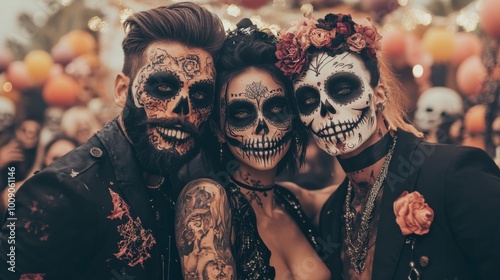 day of the dead, face paint, halloween, festival, traditional, face art, colourful, celebration, rose, flower, headpiece, holiday, costume, skittish, artistic, gothic, group picture, closeup, horror, portrait, scarey, children