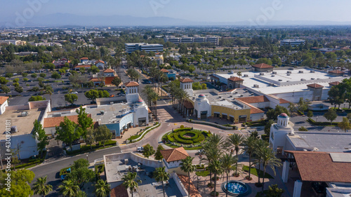 Daytime aerial view of downtown Rancho Cucamonga, California, USA.