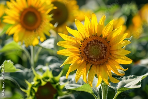 Dazzling Summer Sun Illuminates Vibrant Sunflower Field With Stunning Blossoms Reaching Towards the Sky