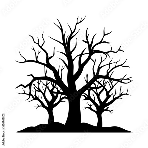 vector, silhouette, tree, illustration, dead, background, autumn, black, halloween, design, nature, forest, tree branch, season, horror, wood, holiday, art, scarey, plant, night, cartoon, shape, october, isolated, skittish, dry, moon, bat, winter, death, evil, old, white, celebration, abstract, dark, fear, drawing, haunted, seasonal, symbol, image, element, pattern, party, cemetery, set