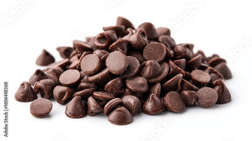 Decadent Chocolate Morsels: Delicious Pile of Chips Perfect for Baking, Isolated on White for a Tempting Top View