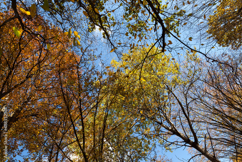 deciduous trees during leaf fall in autumn