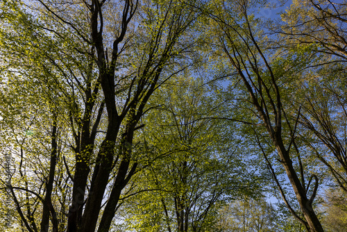 deciduous trees in a mixed forest in the spring season