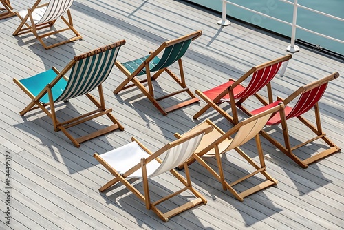 Deck Chairs Await Relaxation and Sunshine on a Cruise Ship Deck