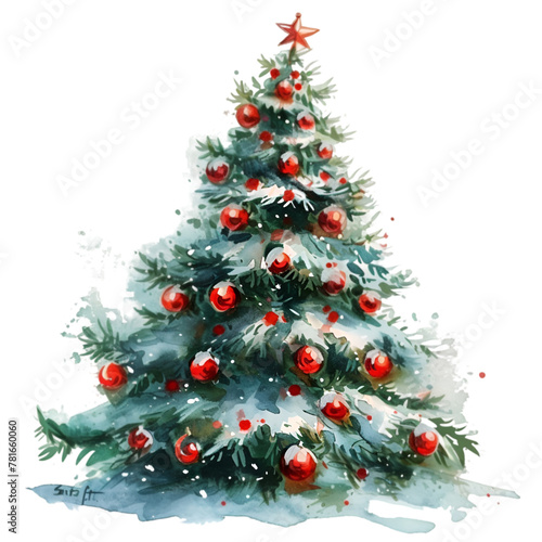Decorated Christmas Tree Watercolor Style