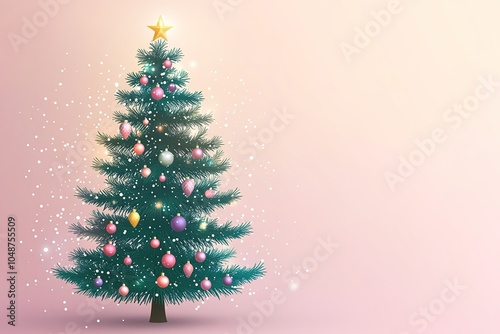 christmas, tree, ornament, star, decorated, colourful, holiday, festive, winter, celebration, decoration, tradition, christmas, pine, ball, light, snowflake, green, pink, yellow, seasonal, joy, merry, bright, adornment, spruce, fir, december, gift, snow, background, light, sparkle, branch, cheerful, ornamented, happy, winter holiday, copy space