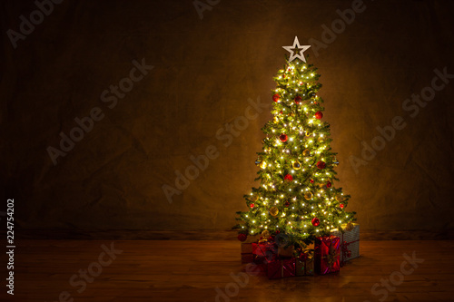 christmas tree, christmas, christmassy, advent, advertising space, pensive, romantic, colourful, decoration, tight, festive, gift, red, shiny, gold, sphere, christmas tree, fir, bejeweled, bauble, container, gift, wrapped, lighted, light, lichterkette, lighting, surprise, star