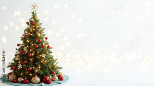 Decorated christmas tree with ornaments and lights, transparent background for festive holiday designs