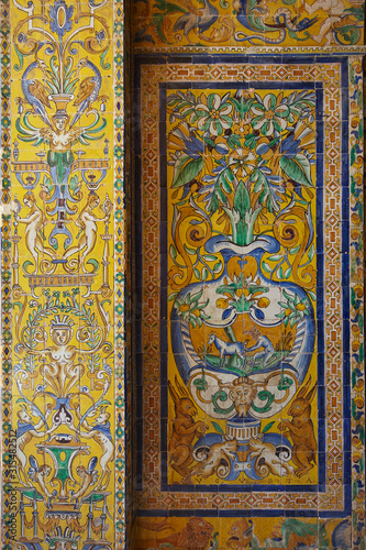 Decorations in Plaza de España (Spain Square) in Seville, Spain