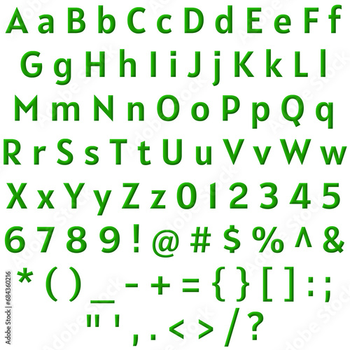 alphabet, set, letter, number, letter, number, decorative, fancy, fun, font, three-dimensional, text, rudiments, design, green