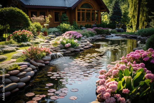duck pond, garden, flower, water, backyard, aquatic, country, nature, summer, artificial, natural, gardening, foliage, decoration, ornamental, zen, pot, stone, rural, bungalow, estate, yard, exterior, floating, residence, old, spring, plant, structure, design, lifestyle, basin, decorative, green, leaf, grass, landscaping, pool, lily