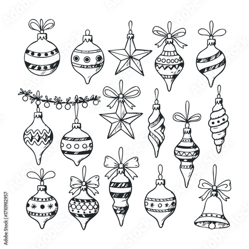 Decorative christmas ornaments holiday season digital illustrations festive atmosphere artistic view seasonal design. Vector illustration