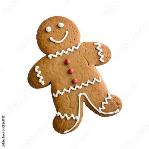 Decorative Gingerbread Cookie with Icing Details isolate on transparent background cutout, PNG file, Cutout file