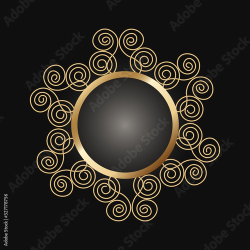 Decorative golden round frame on black background. Luxury mandala in ethnic style. Oriental circular vintage illustration. Arabic, Islamic, moroccan, asian, indian native african motif.