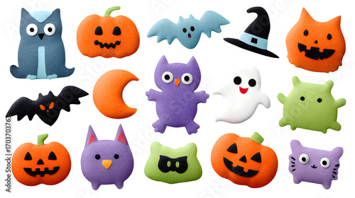 Decorative Halloween element cut-out set with icons, isolated on white background