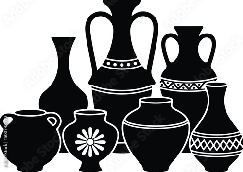 pot, vase, jar, urn, container, silhouette, vector, icon, art, black, outline, design, ceramic, clay, glasses, decorative, antique, modern, floral, ethnic, culture, vintage, traditional, minimal, abstract, ornamental, shape, household, decor, kitchen, storage, pattern, pottery, craft, classic, style, rustic, simple, elegant, heritage, object