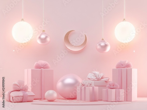 christmas, gift, present, decor, pink, holiday, celebration, accessory, tree, ball, bow, wrapping, paper