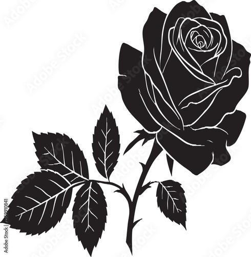 rose, floral, swirl, decorative, elegant, black-and-white, vector, ornate, botanical, romantic, nature, flower, bloom, leaf, vine, curl, flourishes, graphic, illustration, design, pattern, border, frame, wedding, february 14, invitation, tattoo, beauty, natural, intricate, classic, vintage