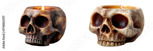 Decorative Skull Candle Holders for Halloween Celebrations Isolate on Transparent Background, cutout, png