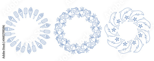 chaplet, summer, decor, crab, dolphin, beach, design, circular, marin, craft, seasonal, graphic, illustration, ocean, playful, fun, art, hand-made, pattern, blue, jellyfish, seafood, starfish, tropical, creativity, nature, coastal, children, party, festive, life, wildlife, ice, cream, animal, theme, aquatic, holiday, cheerful, relaxing, joyful, nautical, vibe, family, design, whimsical