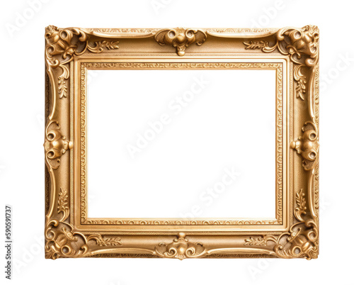 Decorative vintage frame ,Gold photo frame border design isolated background transparent png. Generative ai