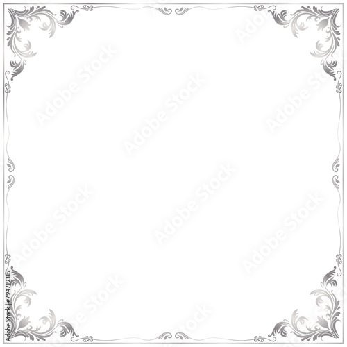frame, border, set, vintage, ornate, silver, chrome, metal, metallic, design, vector, illustration, art, decoration, ornament, pattern, retro, swirl, corner, empty, isolated, blank, photo frame, picture frame, framework, elegant, square
