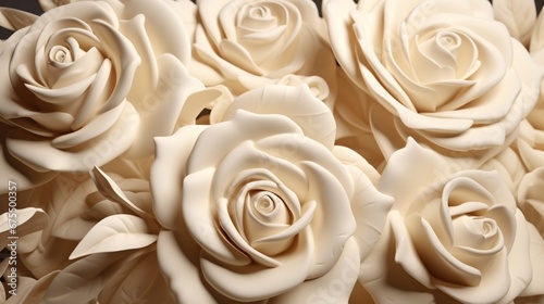Deep carving cream roses flowers quicksand ivory background wallpaper image AI generated art