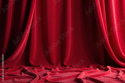 Deep crimson velvet drapes, flowing seamlessly , waves, stage