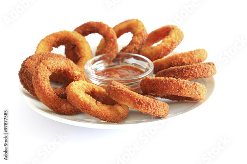 fried, onion, ring, fried, cooked, rich, food, junk, fast food, calorie, unhealthy, sauce, dish, meal, lunch, dinner, gold, american, snack, fries, appetising, delicious, favor, serving, round, vegetarian