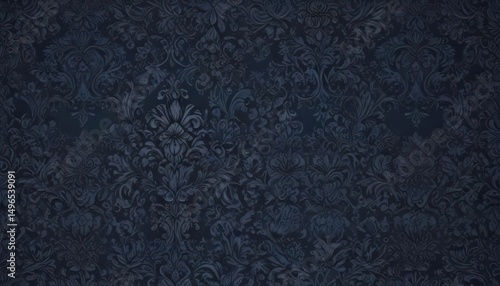 Deep midnight blue gothic damask, rich floral details, seamless wallpaper, dark blue, brocade, design