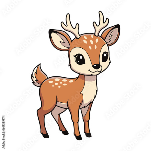 cervid, cartoon, character, isolated, white, background, animal, nature, forest, wildlife, cute, vector, illustration, drawing, graphic, design, art, mascot, comic, funny, happy, cheerful, smiling, expression, pose, standing, fauna, wild, mammal, creature, digital, print, sticker, icon, signs, symbol, antler, stag, fawn, children, children, baby, hoof, tail, nose, eye, brown, green