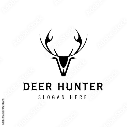 Deer Head,Hunt logo Vintage Illustration Design Vector Art Template
