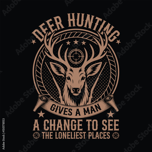 Deer hunting gives a man a change to see the loneliest places.Hunting t-shirt design.