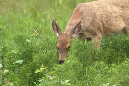 animal, cervid, mammal, wildlife, nature, grass, wild, baby, fur, brown, animal, green, meadow, grazing, eating