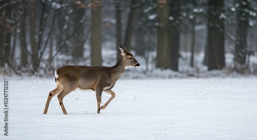 cervid, walking, snow, covered, field, forest, winter, scene, wildlife, mammal, animal, outdoors, nature, timberland, cold, snowy, environment, fauna, landscape, seasonal, winterly, white, ground, tree, standing, travel, wild, countryside, season, scenic, background, isolated, looking, single, day, park, fur, half face, natural, weather, climate, snowfall, fresh, alone, peaceful, habitat, exploration, zoology, christmas