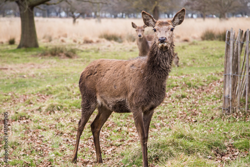 Deers roaming free in the outdoors park