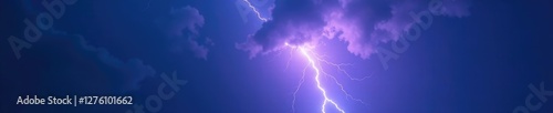 Defocused lightning bolt illuminates a dark blue and purple cloud, contrast, sky