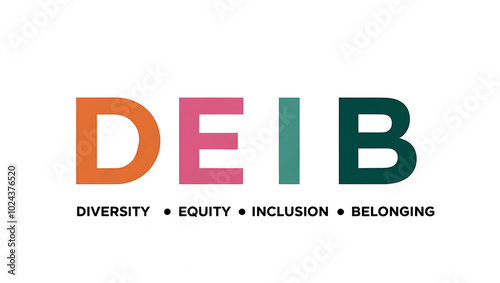 DEIB Typography, Diversity, Equity, Inclusion, Belonging. diversity in the workplace, multiculturalism, unity, diversity awareness
