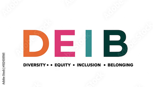 DEIB Typography, Diversity, Equity, Inclusion, Belonging. diversity in the workplace, multiculturalism, unity, diversity awareness