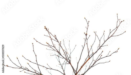 Delicate, bare branches isolated against a pure white backdrop, line, stock photo