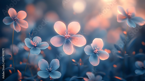 Delicate Blue and Pink Flowers with Soft Bokeh Illustration