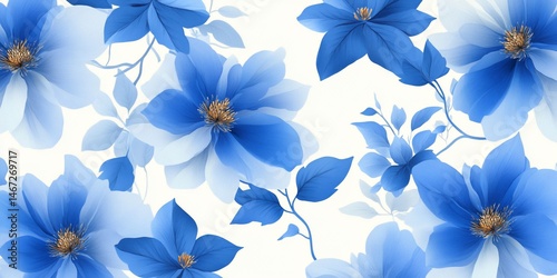 blue, floral, pattern, flower, flower petals, leaf, soft, delicate, design, elegant, background, wallpaper, texture, seamless, illustration, artwork, pretty, beautiful, vibrant, white, romantic, nature, botany, blossom, bloom, spring, summer, pastel, gradient, watercolor, artistic, stylised, graphic, image, digital, print, textile, fabric, style, art, aesthetic, serene, calm, peaceful