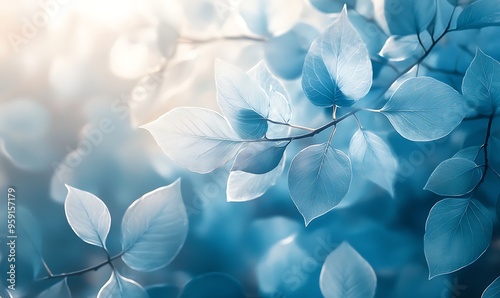leaf, blue, vein, delicate, soft, blurred, background, nature, plant, foliage, tree branch, light, summer, spring, green, closeup, macro, abstract, pattern, texture, vibrant, serene, peaceful, tranquil, beauty, aethereal, dreamy, fresh, natural, botanical, floral, greenery, organic, growth, life, environment
