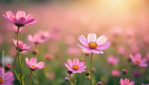 Delicate blush pink wildflowers carpet meadow, vibrant blooms , macro, texture