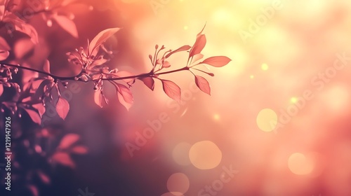 tree branch, leaf, red, sunlight, delicate, spring, summer, autumn, nature, photo, bokeh, soft, gentle, warm, light, glow, vibrant, colours, beauty, peaceful, serene, tranquil, calm, background, image, picture, floral, plant, blossom, flower, bloom, bud, pastel, shades, tone, hue, orange, pink, coral