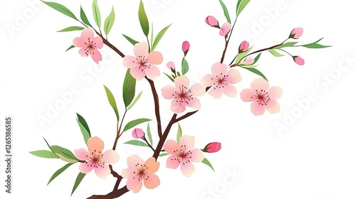 Delicate Cherry Blossom Branch in Soft Pastel Colors Evoking Springtime Serenity