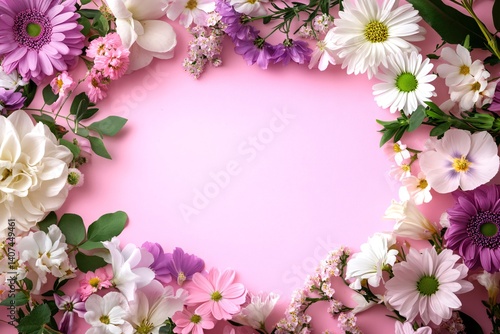 floral arrangement, flower, pink flower, purple flower, white flower, daisy, magnolia, cosmos, greenery, leaf, spring flower, summer flowers, romantic, greeting card, invitation, wedding, celebration, birthday, mother's day, spring, summer, topview, background, decorative, design, floral pattern, pastel, bouquet, closeup, colourful, pretty, feminine, elegant, background image
