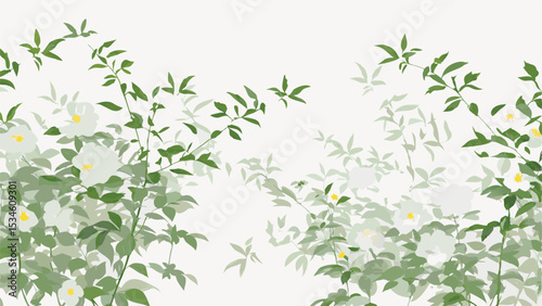 floral, blossom, foliage, white, green, light, background, serene, arrangement, delicate, leaf, branch, flower petals, nature, plant, flora, botanical, artwork, illustration, design, pattern, art, drawing, image, graphic, element, decorative, style, artistic, wallpaper, spring, summer, garden, bloom, fresh, soft, calm, peaceful, elegant, simple, clean, minimalist, natural, organic, growth, yellow